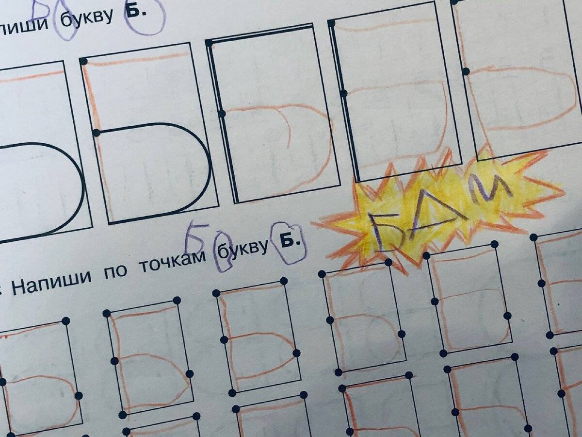 Изучаем букву Б: Макс самостоятельно написал слово “БАМ”, а я превратила это во взрыв – как в комиксах