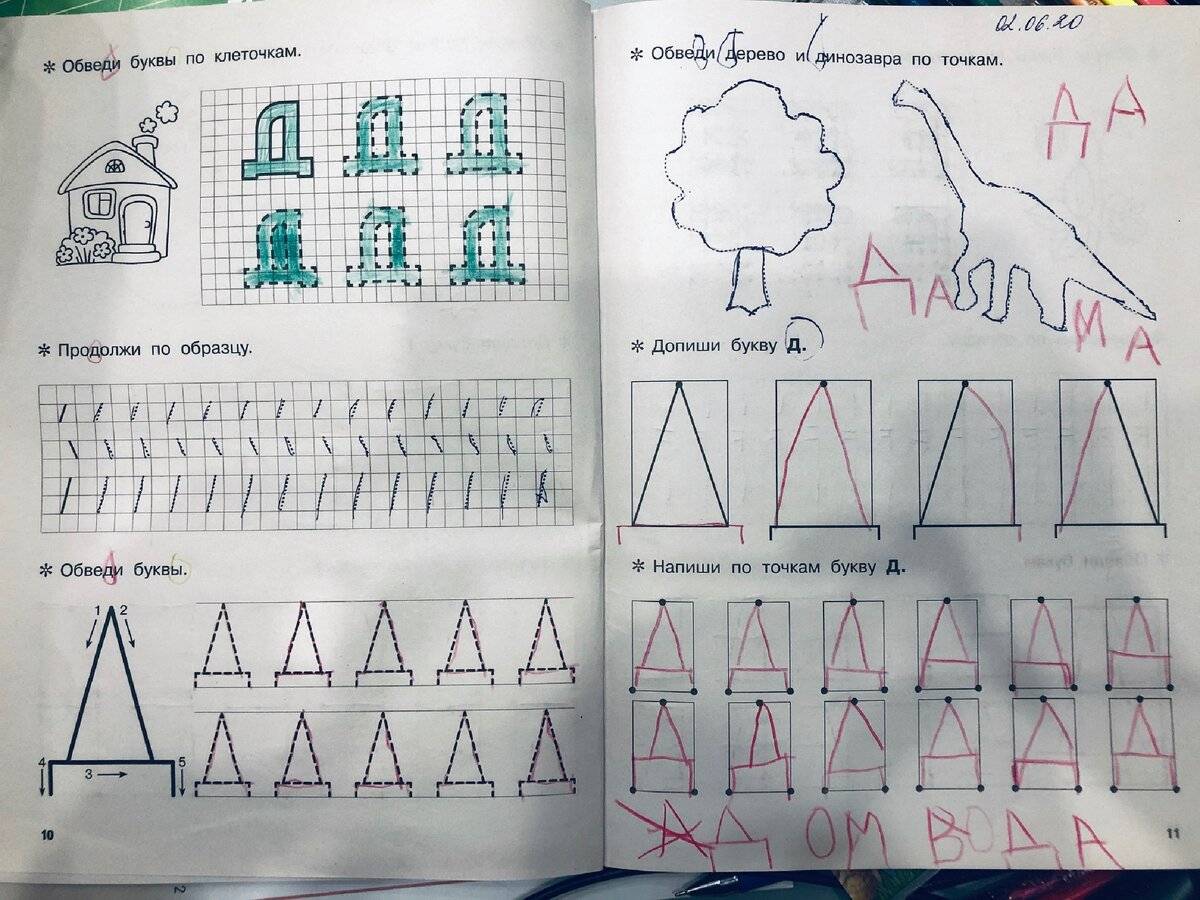 Во второй и третий дни делали по 1 страничке заданий на эту же – изучаемую в данный момент – букву из “прописей”.