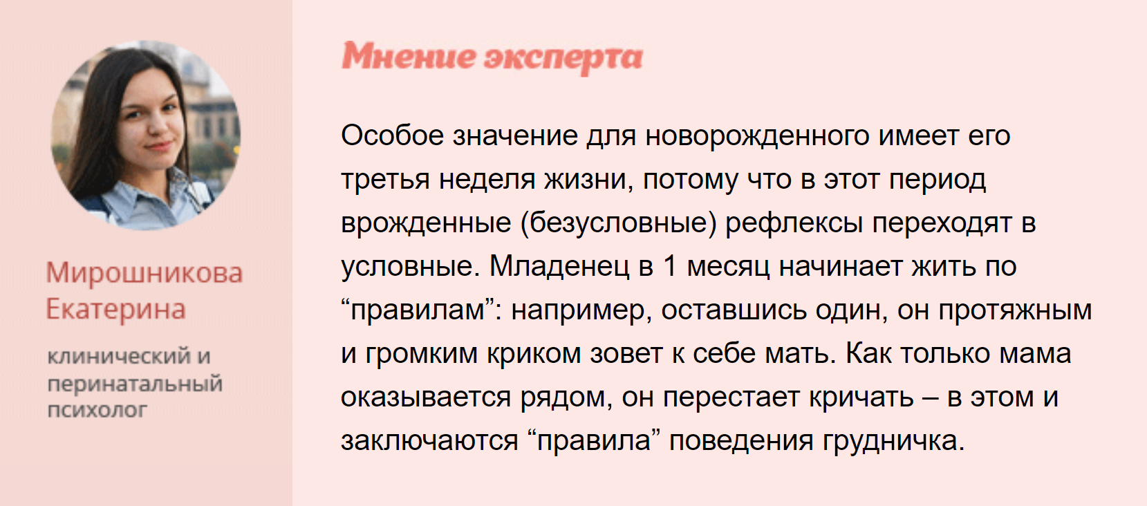 Делать это нужно предельно осторожно. В месячном возрасте психика ребенка очень ранима, поэтому, если долго не реагировать на его плач, может возникнуть серьезный стресс