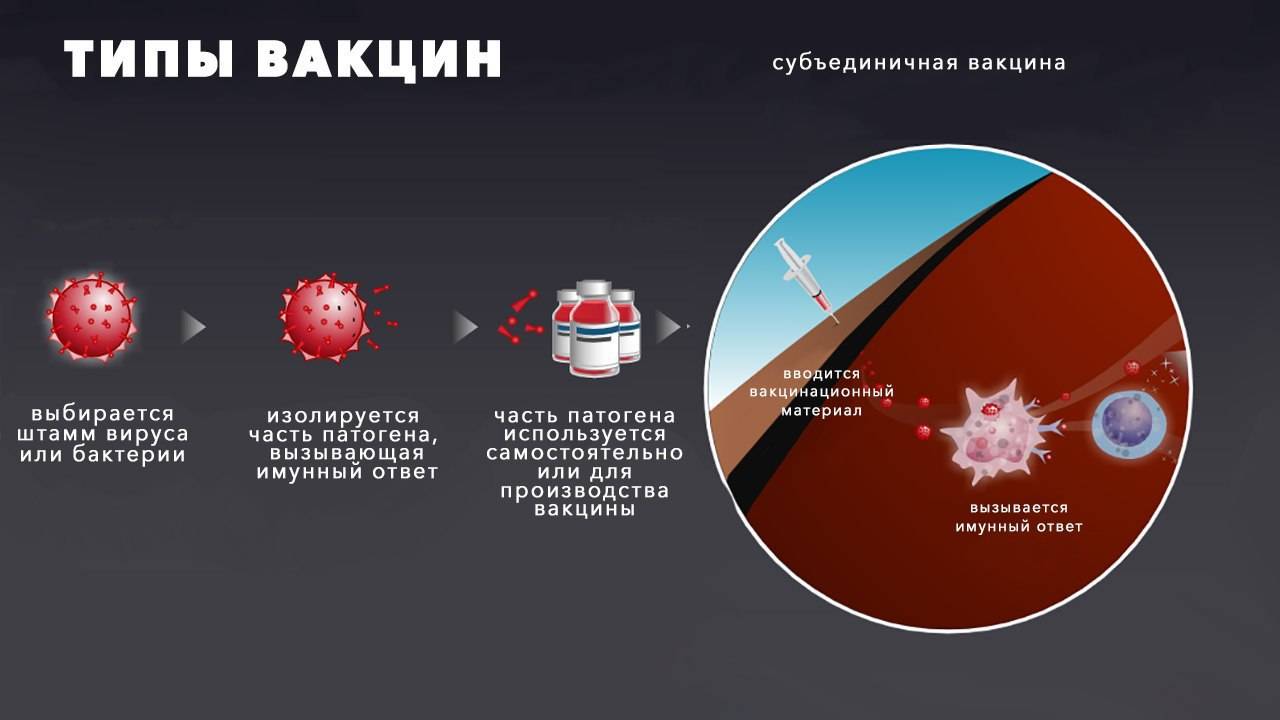 Рисунок 2. Как получают разные виды вакцин. А – Корпускулярные живые ослабленные (аттенуированные) вакцины. Б – Корпускулярные “убитые” (инактивированные) вакцины. В – Субъединичные вакцины. Источник