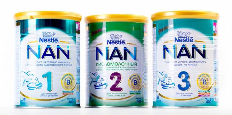 Адаптированная молочная смесь на основе коровьего молока от бренда Nestle. Можно подобрать продукт под любой возраст малыша. Самый популярный вид смеси – Nan Optipro. В ней присутствуют все необходимые компоненты для питания малыша: комплекс жирных кислот и растительных масел, лактобактерии, витамины и минералы. Соотношение казеина к молочной сыворотке 30:70. Недостатком смеси является отсутствие нуклеотидов и олигосахаридов в составе.