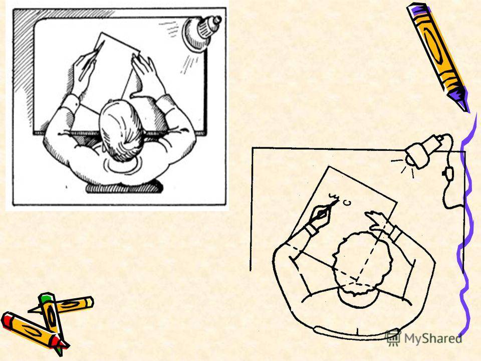 При письме тетрадь правша наклоняет влево, а левша – вправо примерно на 30 градусов. Тогда ребенку не придется поворачивать туловище;