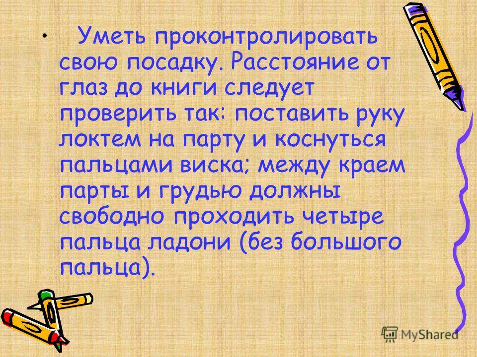 В сидячем положении грудь должна находится на расстоянии детского кулака от края стола;