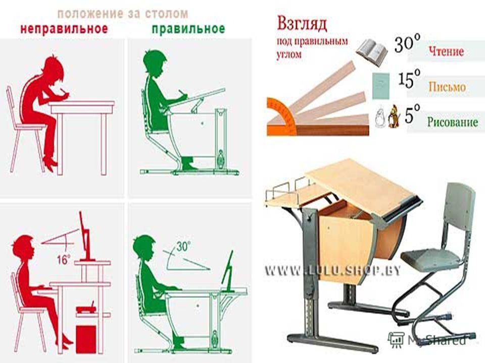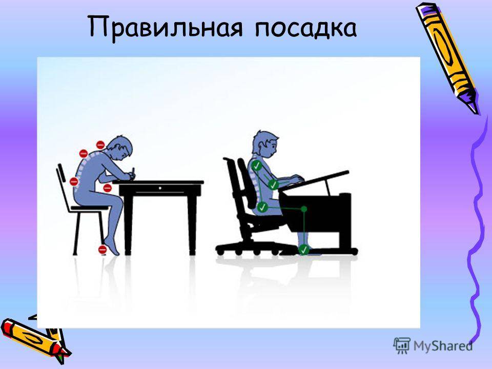 чтобы ребенок приспосабливался к разным местам, не привыкал сидеть под одним наклоном к доске. - При работе с компьютером следить