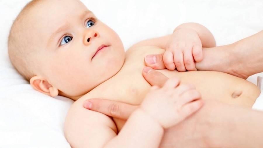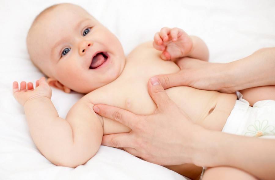 - Лёгкими движениями поглаживаем кроху от ручек, ножек к центру животика.