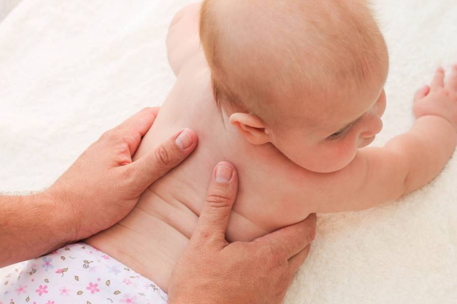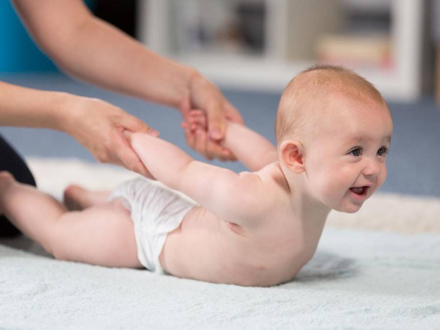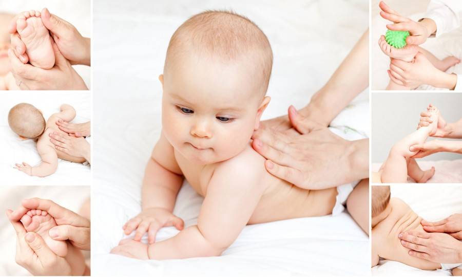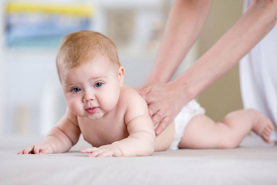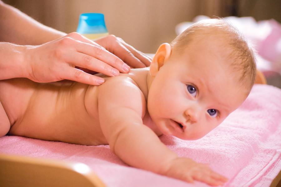 Перед тем как приступать к упражнениям, нужно сделать малышу общеукрепляющий массаж с использованием массажного масла или детского крема. Руки взрослого должны быть тёплыми. Для массажа можно использовать массажный мячик.