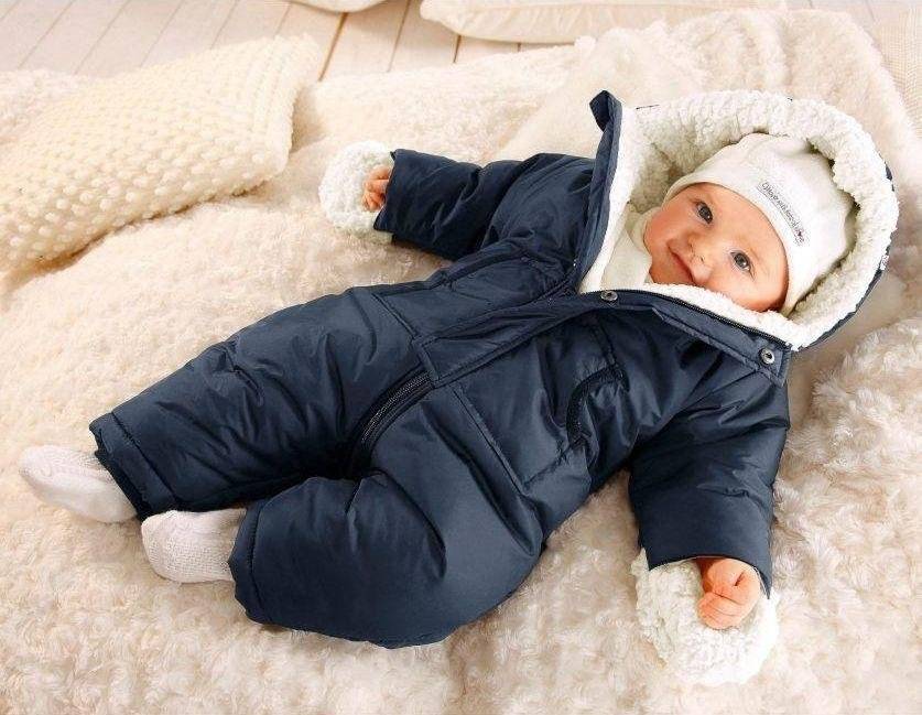 - одежда должна быть по размеру, допускается небольшой запас. Если это боди или человечек, эти элементы гардероба не должны стеснять движения крохи. А вот тёплые комбинезоны не стоит покупать на несколько размеров больше, чтобы малышу хватило на два-три года. Дело в том, что кроха не двигается в коляске, а слишком свободная верхняя одежда не удерживает достаточно тепла, поэтому младенец может замёрзнуть;