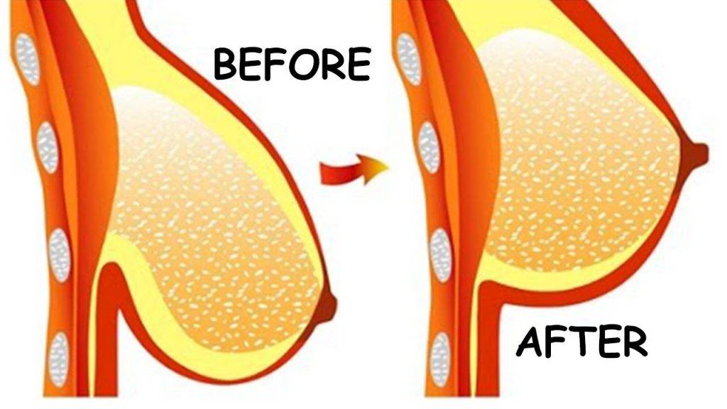 Потеря кожей и связками эластичности происходит с возрастом. Снижается выработка организмом коллагена и эластина, дермальный каркас становится рыхлым. Кожа теряет упругость и способность удерживать вес желез. В первую очередь это касается груди больших размеров.