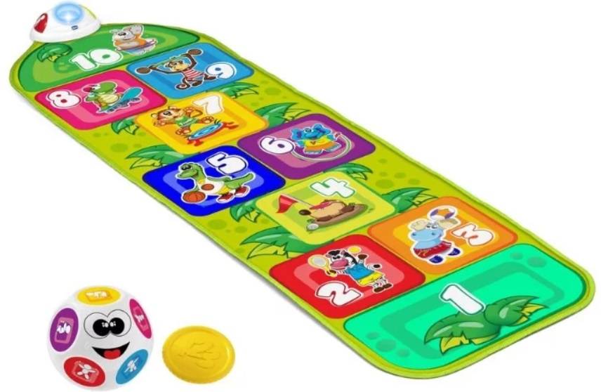 Танцевальный коврик прямоугольной формы имеет размеры 150*40 см и имитирует игру в классики для детей от 3 лет. Рабочая поверхность выполнена из качественного нескользящего пластика, а изнаночная — из текстиля. При прыжках с одной клеточки на другую звучит музыка и появляются разнообразные световые эффекты.