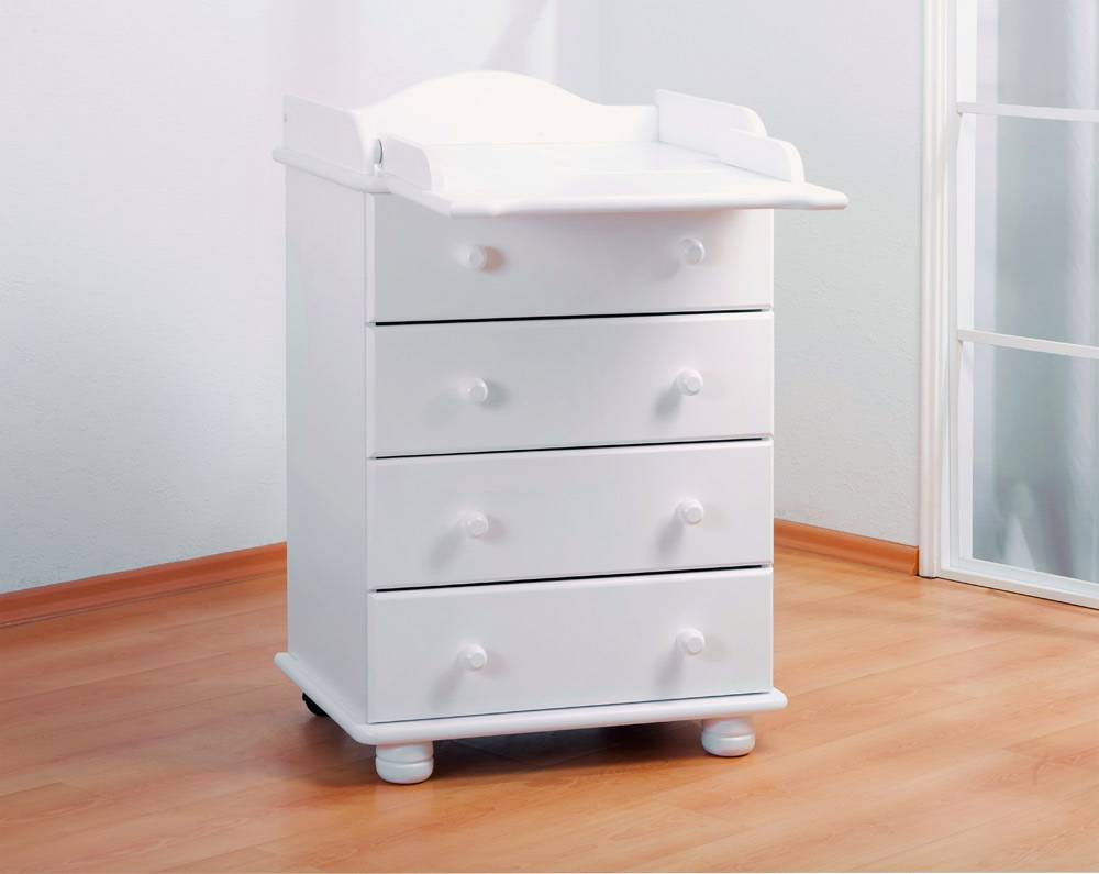 Пеленальный комод сочетает в себе функции пеленального столика и ящичков для разных мелочей и одежды малыша.