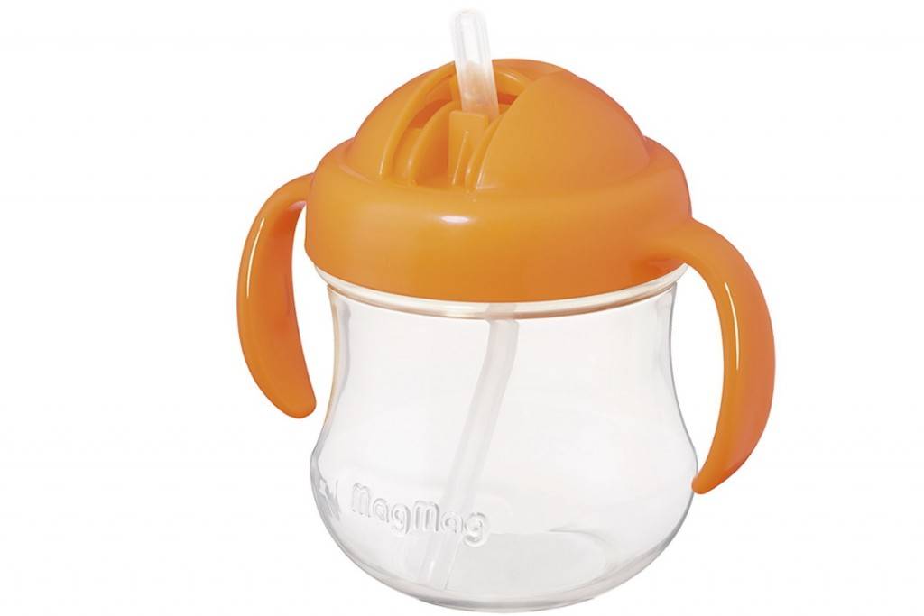Эта надежная и герметичная чашка идеально подходит для обучения самостоятельному питанию, начиная с 1,5 лет. С ней можно не переживать за здоровье малыша, она сделана из гипоаллергенного полипропилена. В ней переносят до 340 мл жидкости. Правда, согласно отзывам, бывает, что возникают сложности с закрытием крышечки. Также есть нарекания на то, что на трубочку необходимо надевать наконечник. Этот элемент достаточно мягкий, изготовлен из силикона. Покупать его отдельно не нужно, он идет в комплекте, так же, как и крышка.
