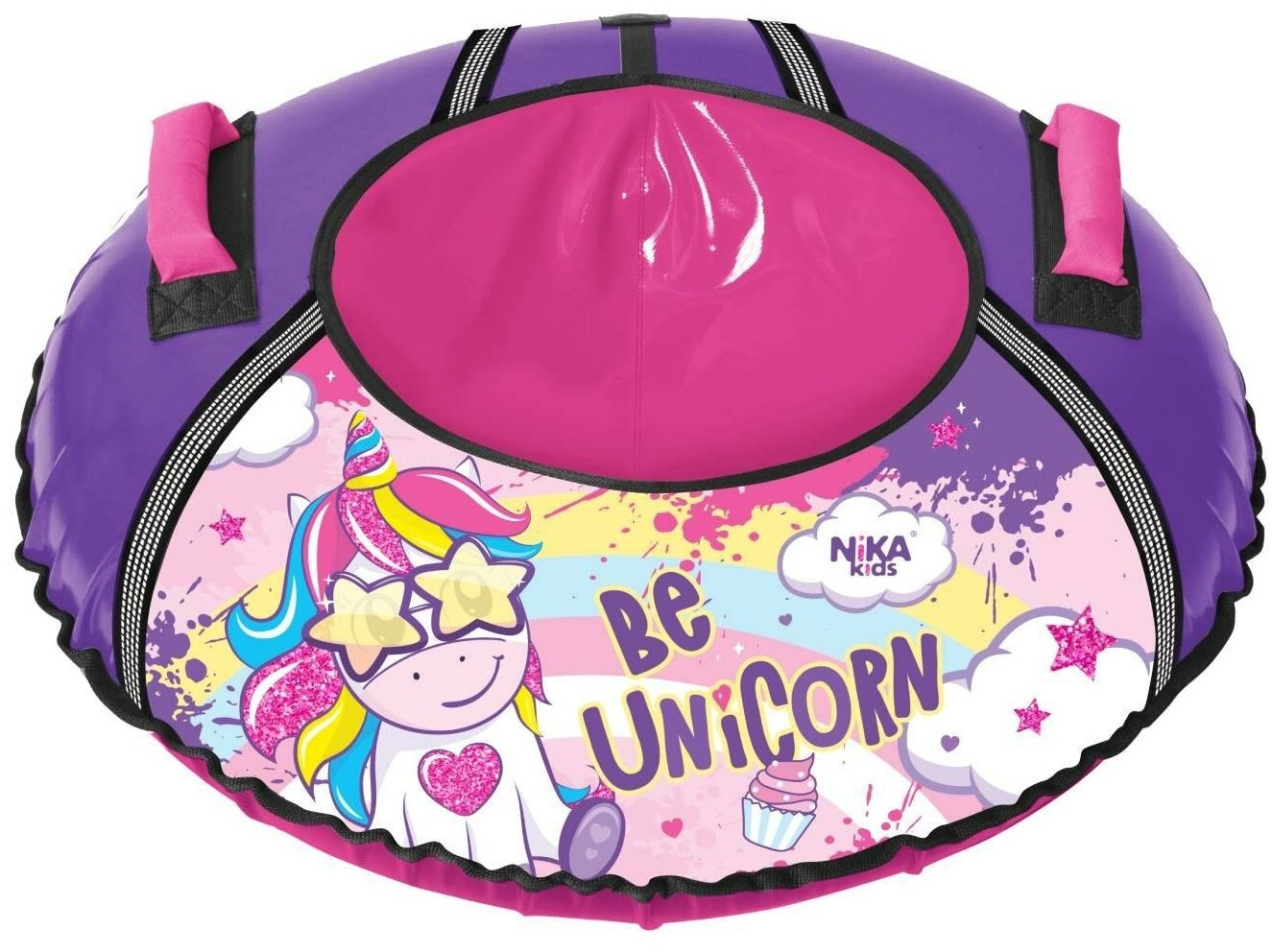 NikaТБ1КР-70’ЕР выдержит нагрузку не более 70 килограмм. Сам товар весит 2. 46 кг. В комплекте есть буксировочный трос. Ещё одна особенность — это укрепленное сидение, что делает его более безопасным для вашего малыша. На ватрушке изображен единорог, который будет радовать ваших детей.