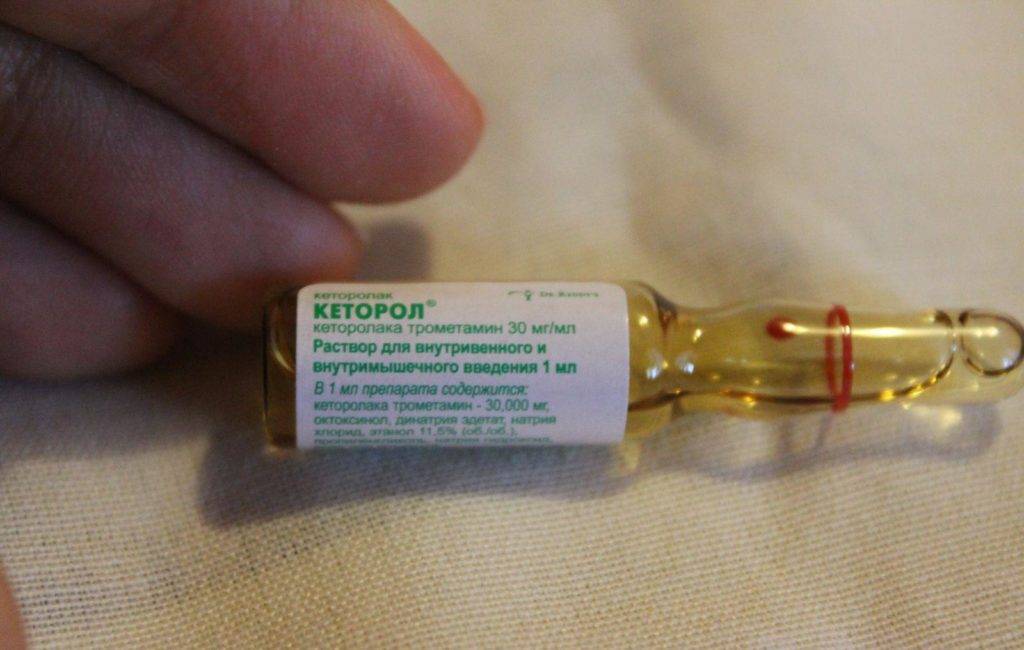 - кеторолак – 0.03 г;