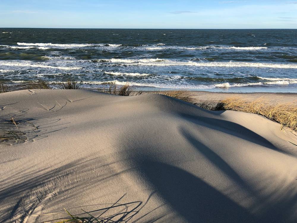 Ещё одно знаковое место Калининградской области — Куршская коса. Обустроенных пляжей здесь три — в посёлках Лесное и Рыбачий и у турбазы «Дюна». Там есть зонтики, лежаки, кабинки для переодевания, кафе. Остальные пляжи дикие — с детьми не слишком удобно, зато очень красиво: белый песок, дюны и причудливо изогнутые «танцующие» деревья. С середины июля можно купаться и в Балтийском море, и в заливе с пресной водой.