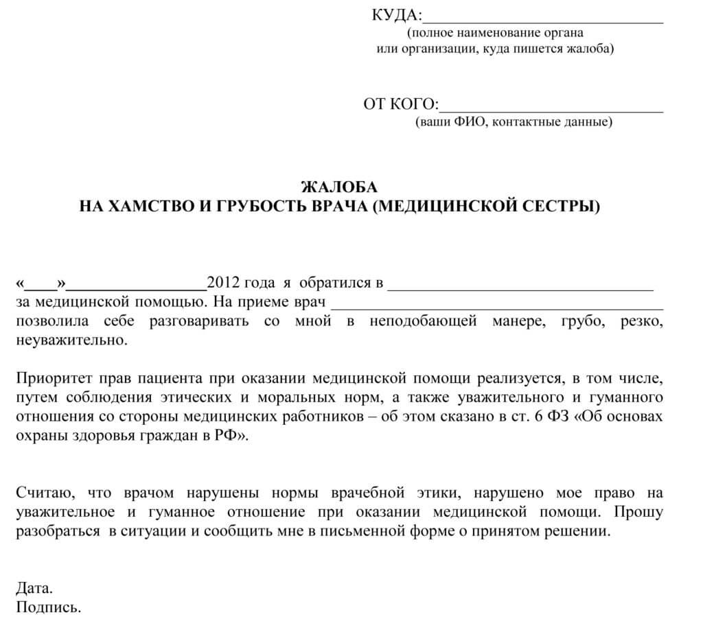 На недостойное поведение врача можно пожаловаться главному врачу медицинского учреждения, чтобы он, в свою очередь, применил меры дисциплинарного взыскания.