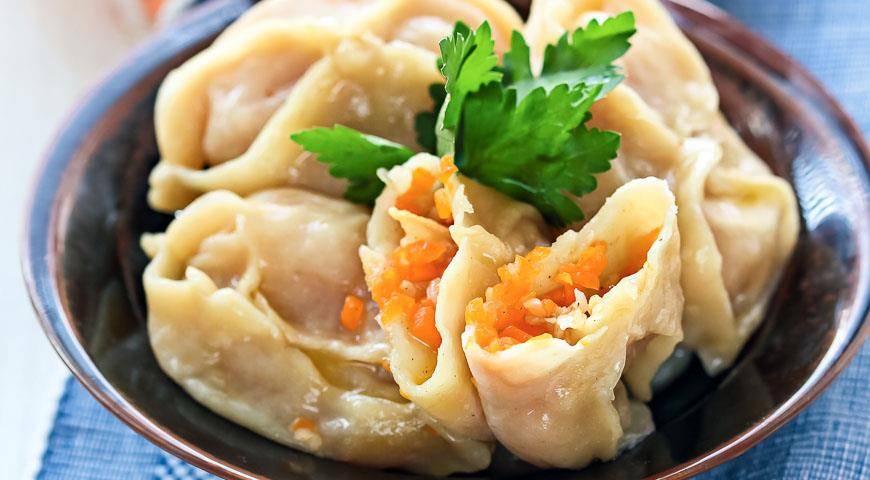 - В серединку выложить 2 ст. л. начинки и кубик масла, сформировать манты.