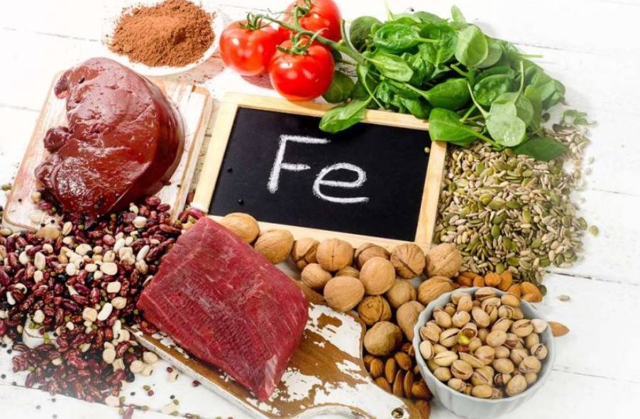 — печень, рыба, грибы, яйца, морепродукты, говядина, бобовые, гречка, шпинат, изюм, чернослив, яблоки, инжир, сливовый сок (насыщены железом);