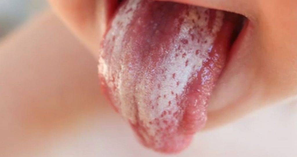 Чаще всего такая разновидность пятен проявляется в грудничковом возрасте. Их возникновение обусловлено ослаблением иммунитета малыша или заражением от мамы (во время родовой деятельности или во время вынашивания). В этом возрасте они имеют второе название – молочница (она характеризуется тем, что на слизистой языка образуются пятна, которые имеют различную форму и размеры, а над ними возвышается налёт, имеющий творожистую консистенцию).