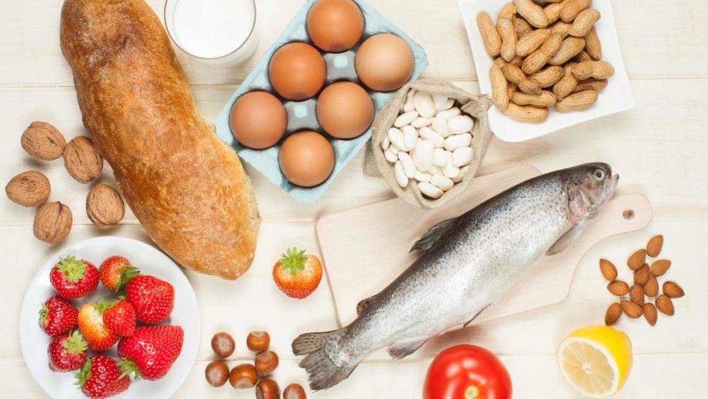 - Первая — (высокая степень аллергенности): яйца, рыба, морепродукты, икра, пшеница, рожь, морковь, помидоры, сельдерей, болгарский перец, земляника, клубника, малина, цитрусовые, киви, ананас, манго, кофе, какао, шоколад, грибы, орехи, мед, гранат, хурма, дыня;