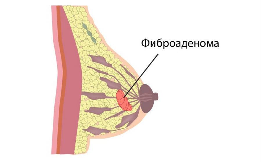 Фиброаденома четко ограничена, пальпируется, смещается по отношению к основанию. Она сама по себе не болит, но из-за давления на соседние структуры или положение в районе нерва может вызвать боль и недомогание. Лимфоузлы в подмышечной области могут быть увеличены.