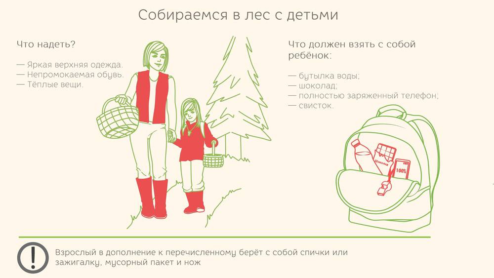Чтобы прогулка не превратилась в опасное происшествие, важно правильно собраться. У каждого ребёнка, который идёт в лес, должен быть с собой набор из следующих предметов: