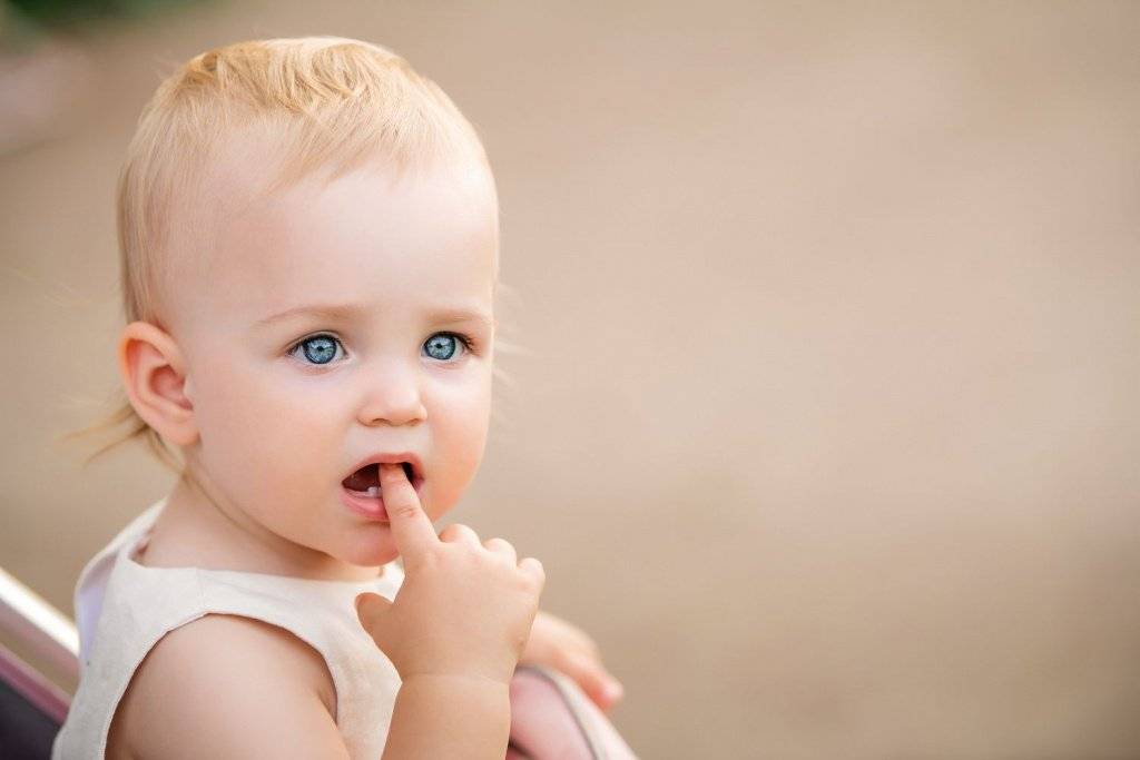 Именно прорезывание зубов чаще всего провоцирует появление зудящих и болезненных ощущений в ротовой полости у младенцев. При этом у ребенка текут слюни пузырями, он постоянно держит кулаки во рту. Как правило, этот процесс начинается в начале 6 месяца жизни, но часто первые симптомы проявляются в 2-3-месячном возрасте, а иногда и раньше. Продвижение первых моляров в деснах может сопровождаться повышением температуры тела, нарушениями в работе ЖКТ, повышенной возбудимостью. Однако основным признаком появления зубов является набухание и отек мягких тканей десны у малыша.