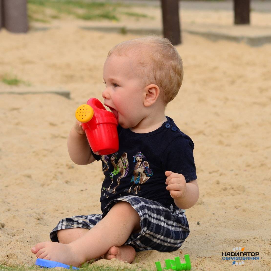 - Если малыш съел немного песка, не пугайтесь. Он скорее всего выйдет естественным путем.