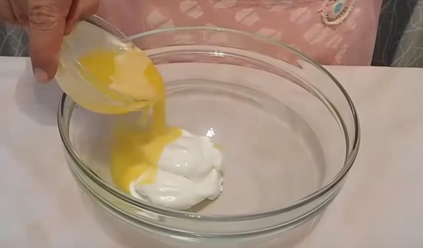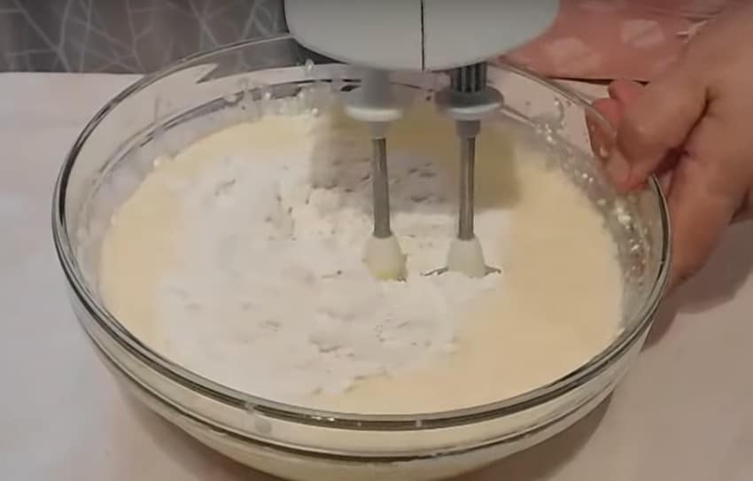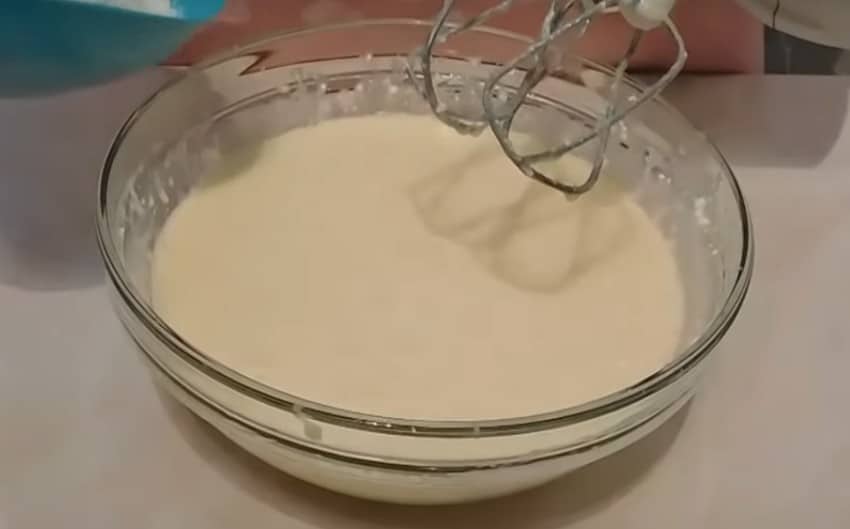 - Взбиваем оба ингредиента между собой до однородности, в этом нам поможет обычный венчик или же миксер.