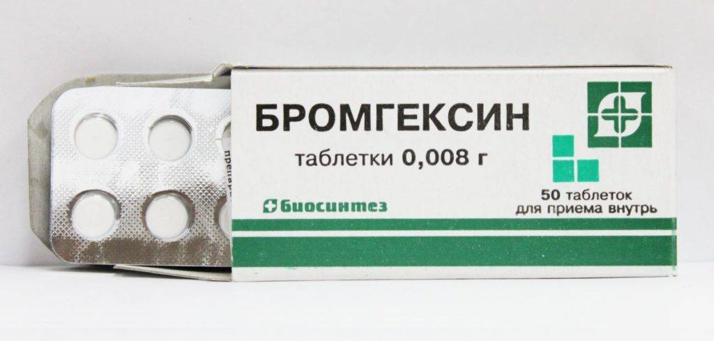 Бромгексин — муколитическое средство, выпускается в форме таблеток, драже и микстуры. Запрещен к приему в первом триместре беременности, далее — с осторожностью. Детям назначают с трех лет.