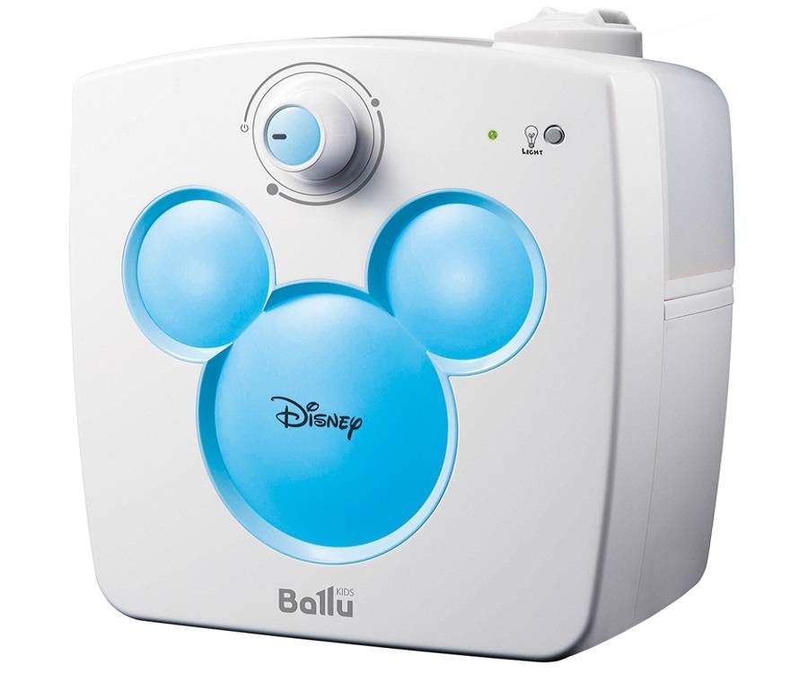 Даже внешний вид прибора говорит о том, что Ballu Disney — увлажнитель воздуха, который лучше всего подойдет для детей. Устройство располагает только нужными функциями: распылением на 360 °, возможностью регулировки скорости увлажнения и направления воздушных потоков. Если ваш малыш боится темноты, вы можете включить ночную подсветку, которой оснащена модель, и в комнате воцарится приятная атмосфера для спокойного сна.