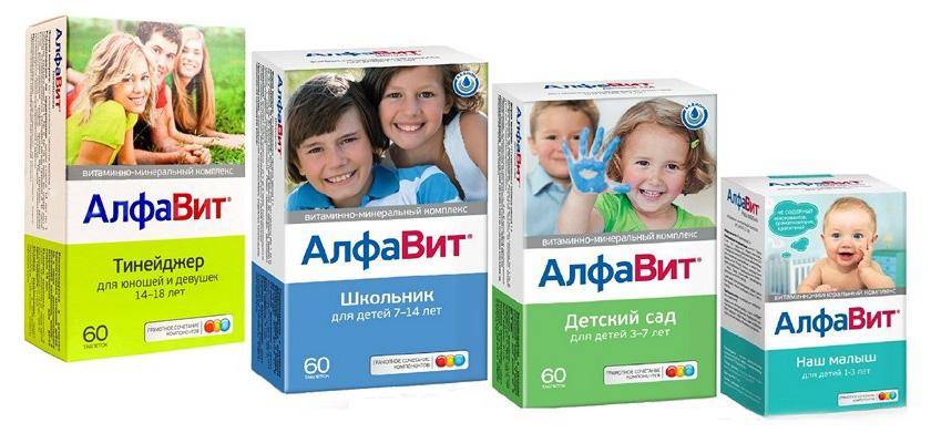 Производитель «Внешторг Фарма», Россия. Алфавит Наш Малыш предназначен для детей от 1 до 3 лет. Алфавит Детский сад ― детям от 3 до 7 лет. Для детей старше рекомендован Алфавит Классик. В их состав входят витамины В1, В2, В3, В5, В6, В9, В12. Эти лекарства выпускаются в виде таблеток и порошка, который нужно растворить в воде перед употреблением. Дневная доза препарата составляет 3 порошка с разным составом. Такое разделение было проведено с учетом взаимодействия компонентов.
