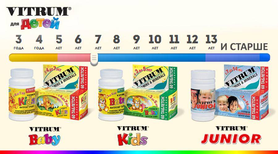 Производитель Юнифарм, США. Жевательные таблетки Витрум Бэби для детей от 2 до 5 лет, цена упаковки 30 шт. ― от 600 рублей. Таблетки Витрум Юниор можно давать с 4 лет (пол таблетки в день) и с 7 лет (целая таблетка), стоимость 30 таблеток ― от 450 рублей. Этот комплекс содержит весь спектр витаминов группы В в физиологических дневных дозировках.