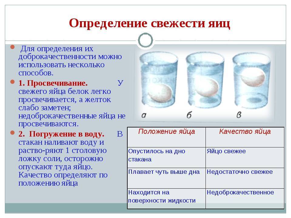 В детском питании одним из важных условий является свежесть продуктов, ведь от этого напрямую зависит здоровье ребёнка. Существует несколько способов определения свежести яйца:
