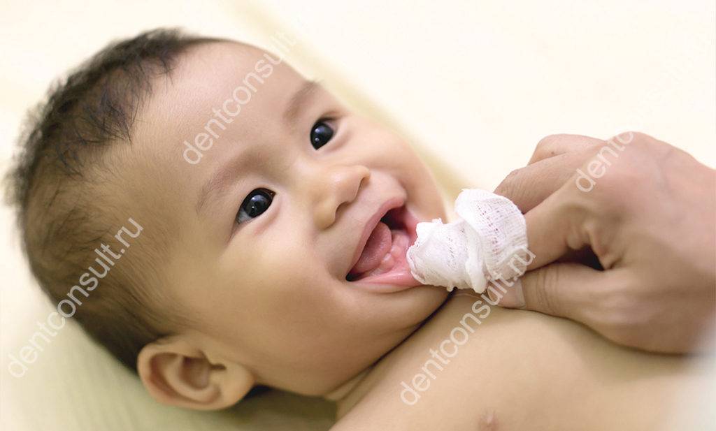 Родителям нужно начинать заботиться о гигиене полости рта своего ребенка еще до момента появления первых зубов. Даже совершенно голая слизистая является благоприятной средой для размножения бактерий. В возрасте до полугода использовать щетку, конечно, рано. Но на этот случай можно прибегнуть к помощи чистой марли, смоченной в кипяченой воде комнатной температуры и намотанной на палец. Это подходящий вариант, чтобы бережно обработать слизистую и снять налет.
